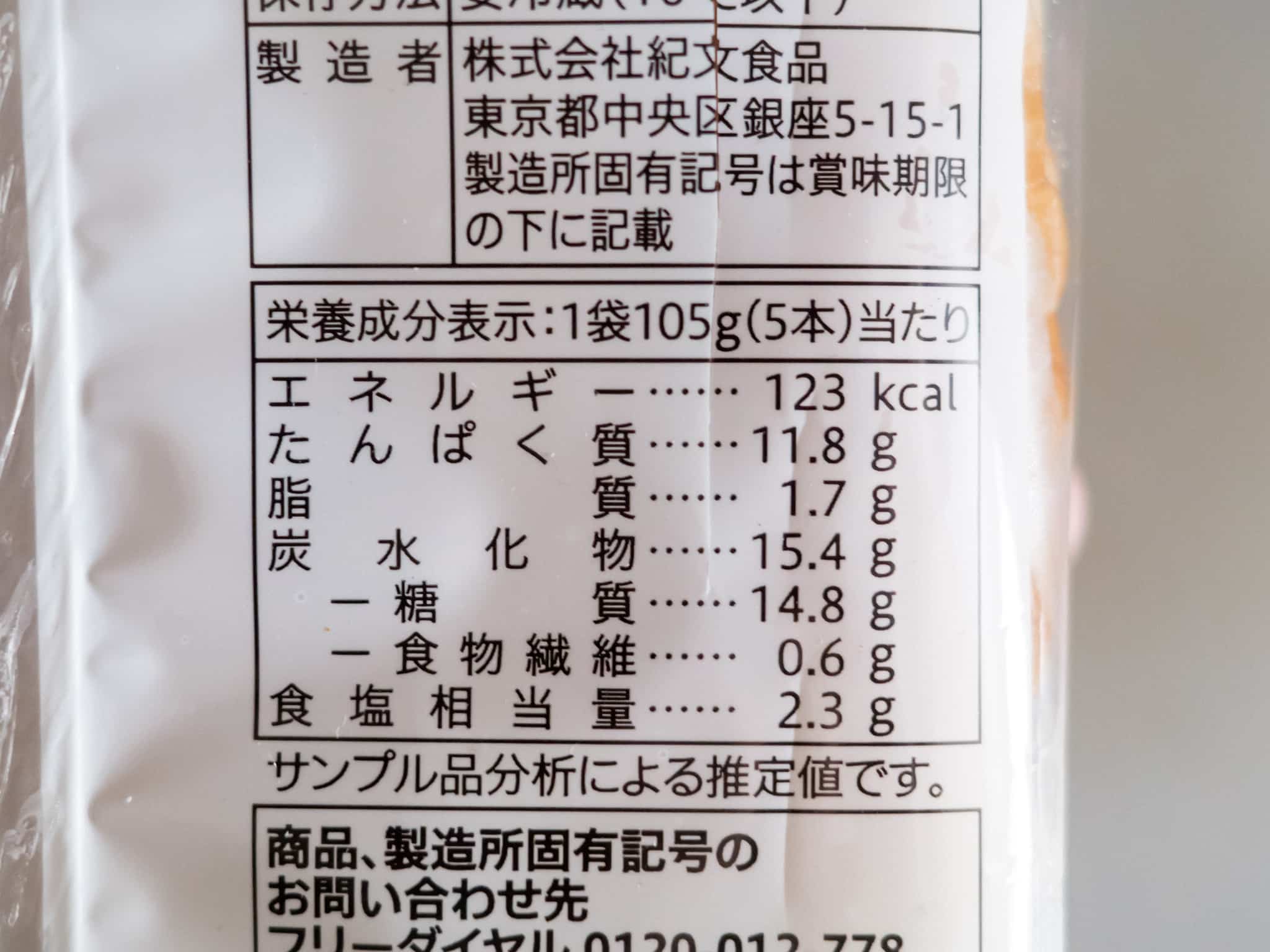 一応、使ったちくわの栄養成分表示(カロリー)。