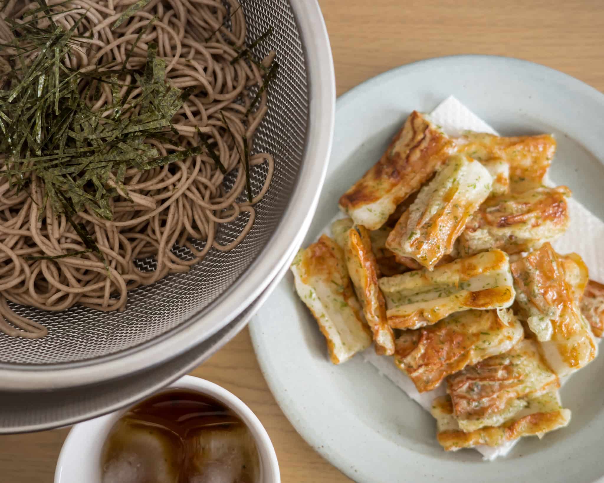 この蕎麦、安いのを買ってしまい、単体だとテンションが下がる味だったので、ちくわの磯辺揚げ食べ放題パワーで誤魔化していきたい。