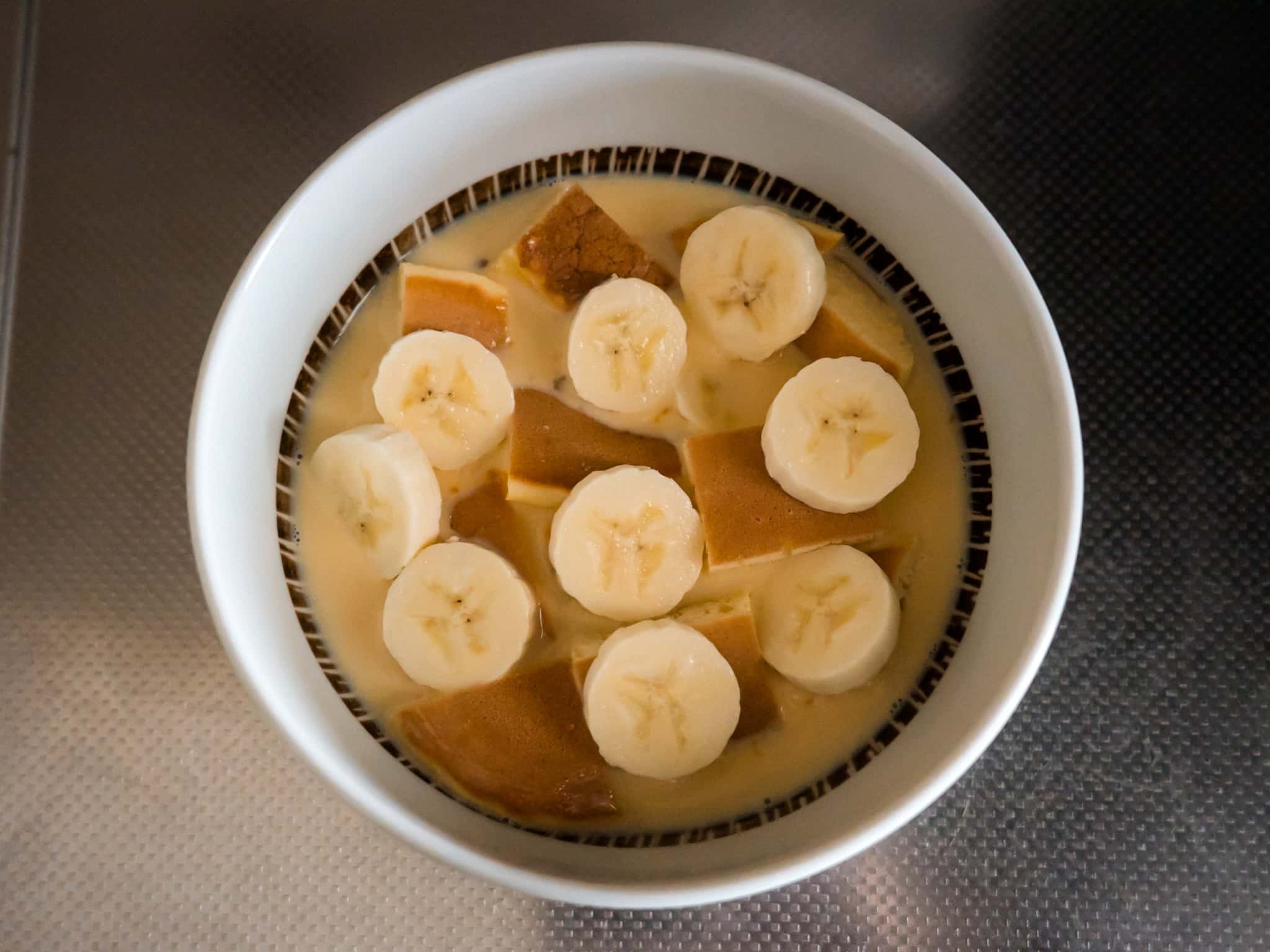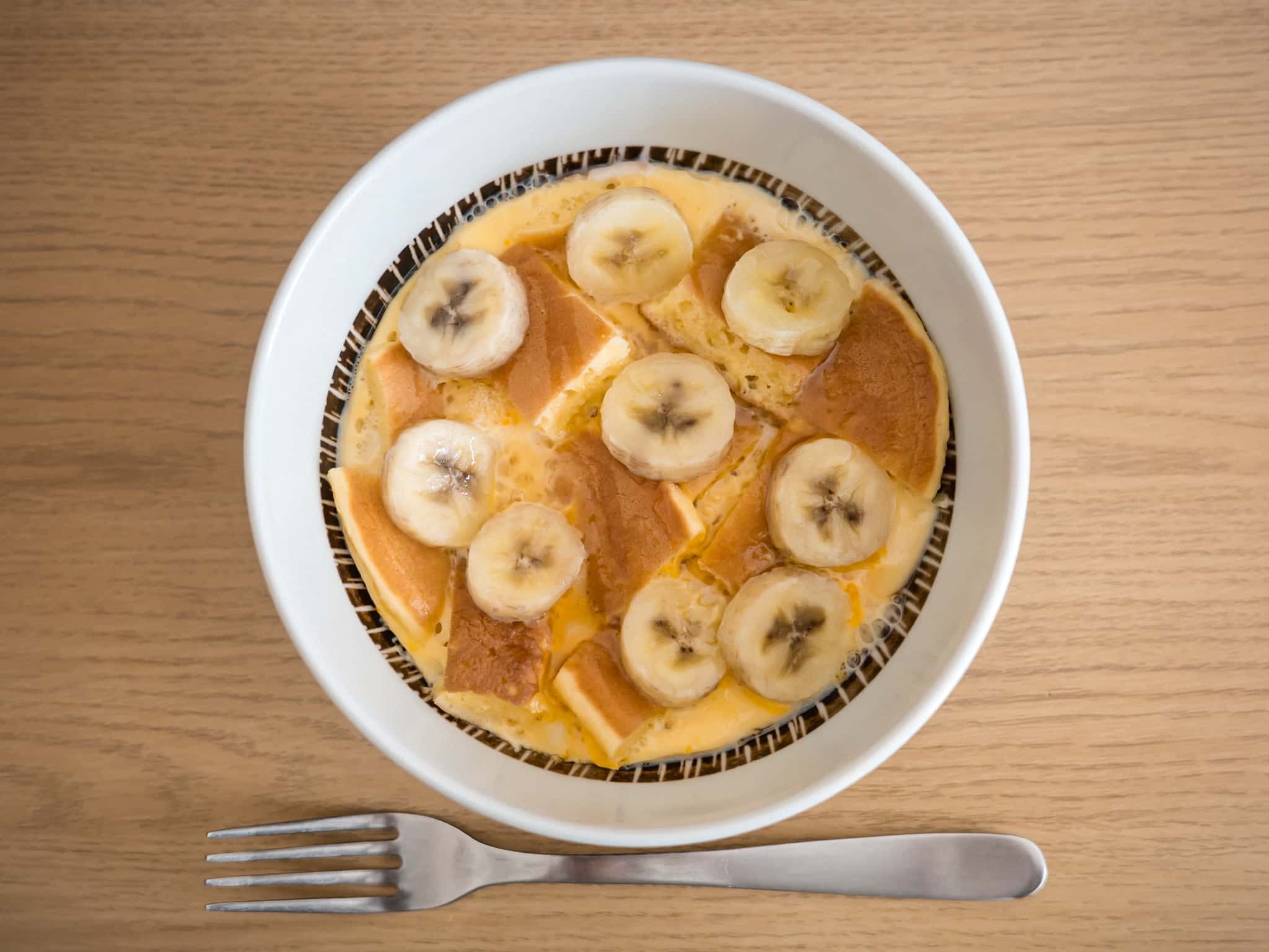 森永のレシピ「バナナホットケーキプディング」で朝ごはん
