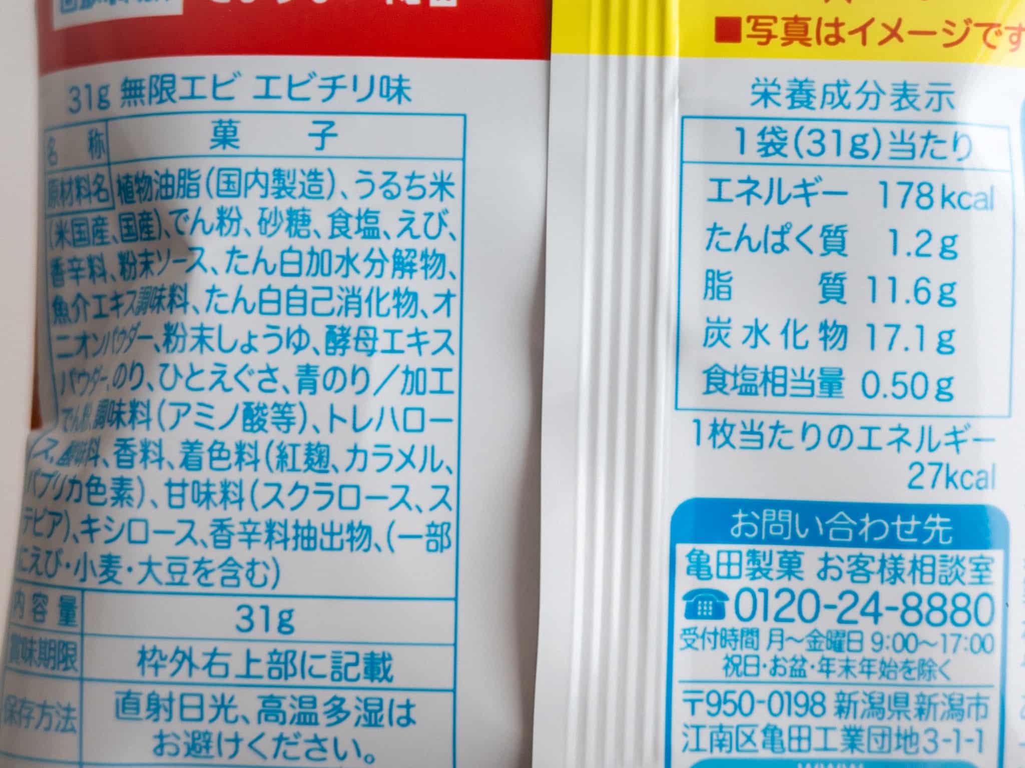 無限エビ「エビチリ味」原材料名やカロリー