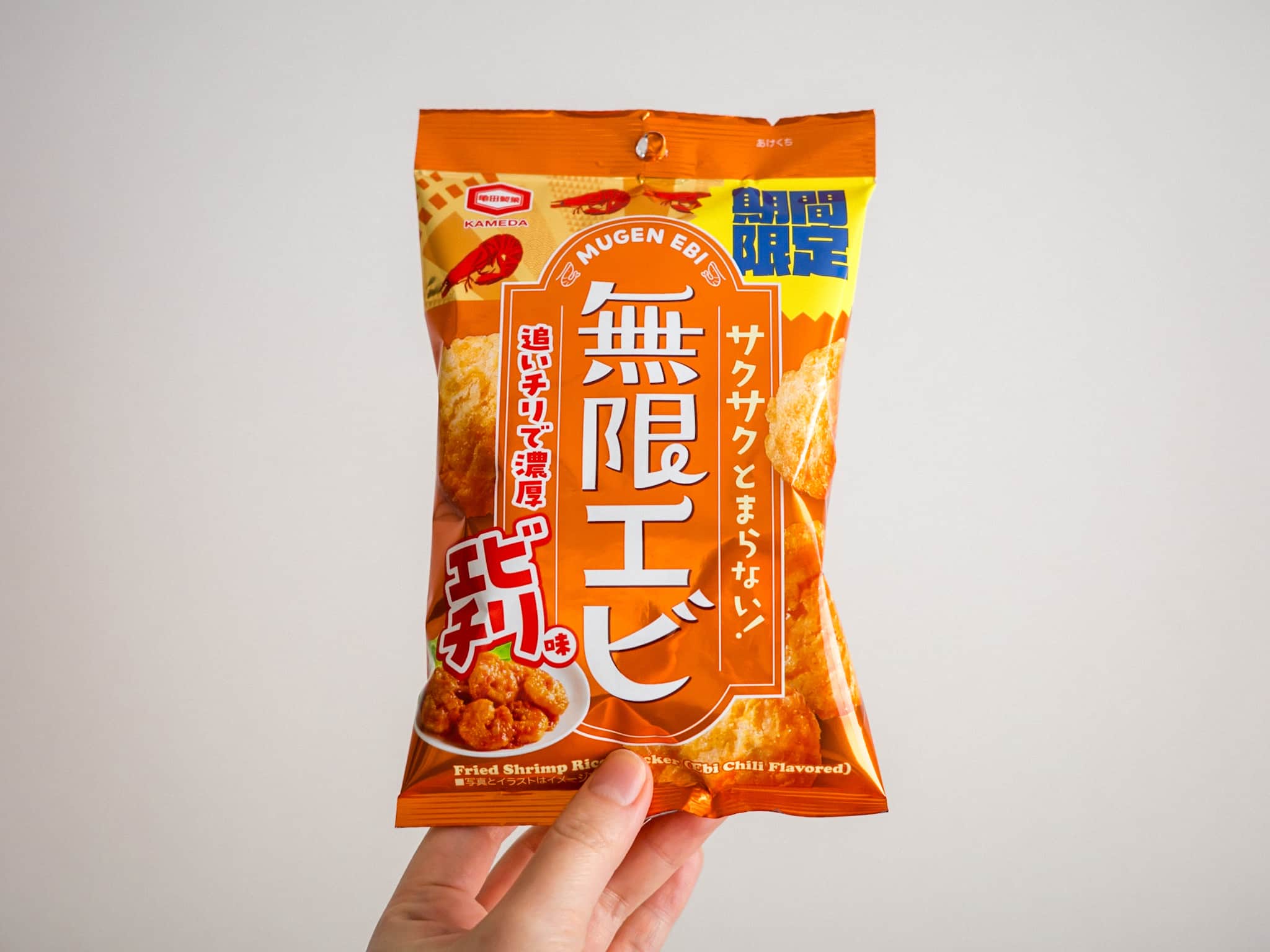 亀田製菓「無限エビ」の、期間限定エビチリ味。