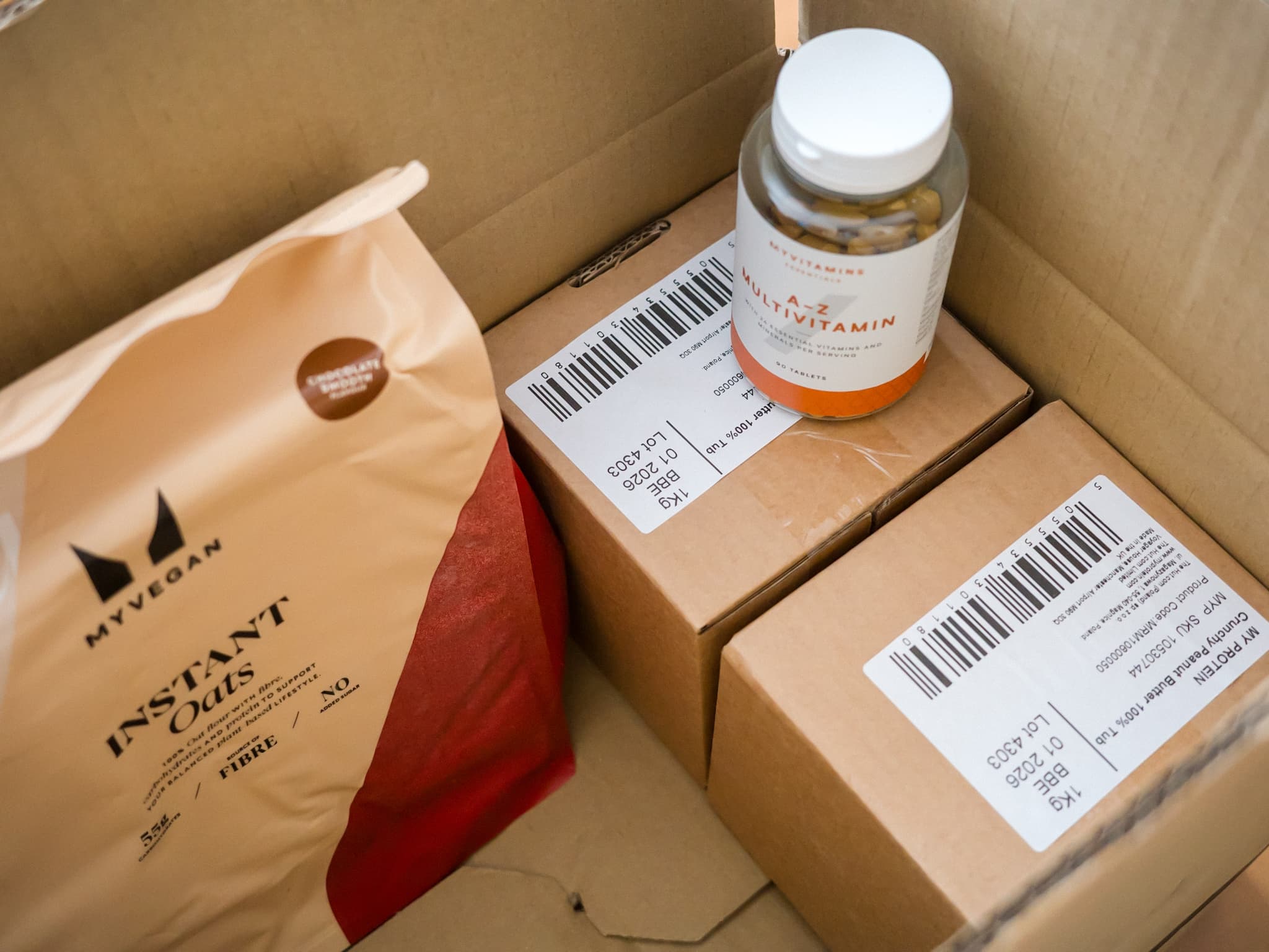 ピーナッツバター(クランチ)を2個と、A-Zマルチビタミンと、オーツのチョコレートスムーズ味。