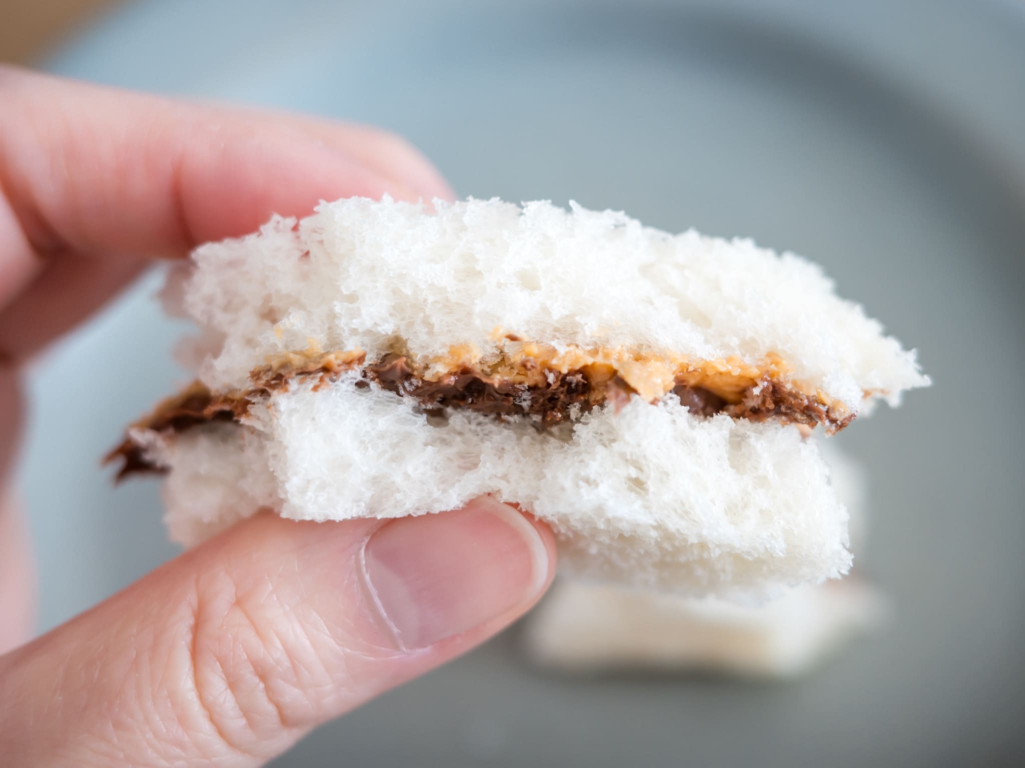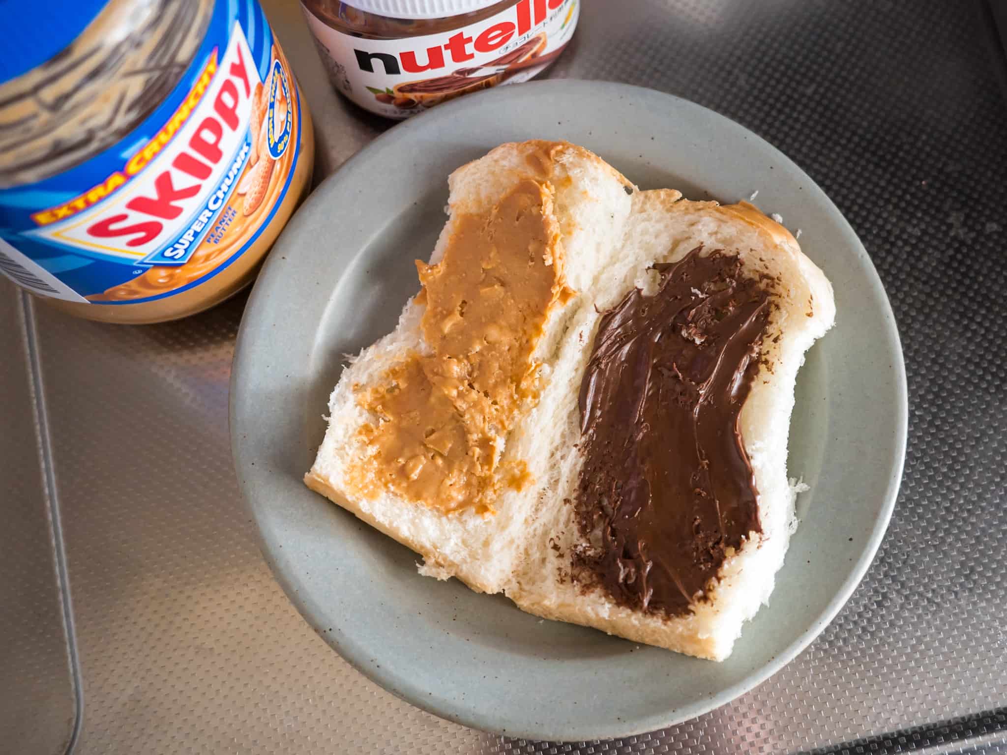 パンの一枚にはピーナッツバター、もう一枚にはヌテラを塗って、サンドしているのだった。