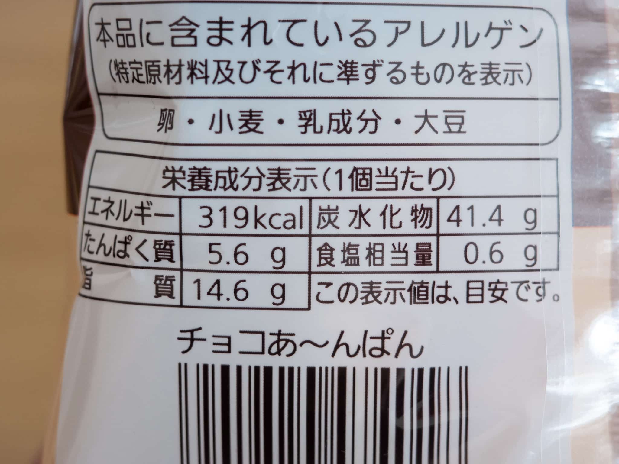Pasco コラボ チョコあ〜んぱん パン 栄養成分表示 カロリー