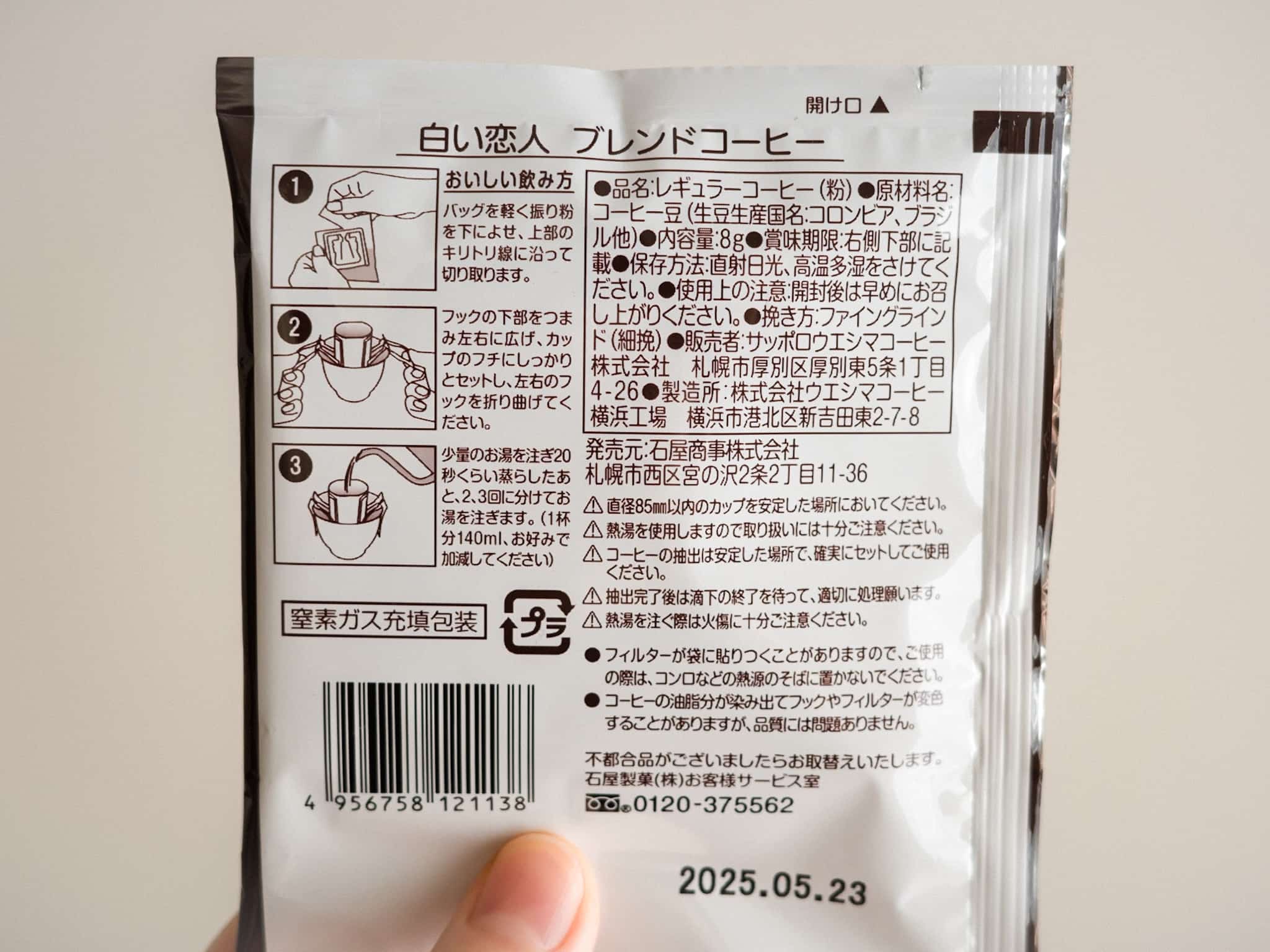 白い恋人 ブレンドコーヒー パッケージ裏