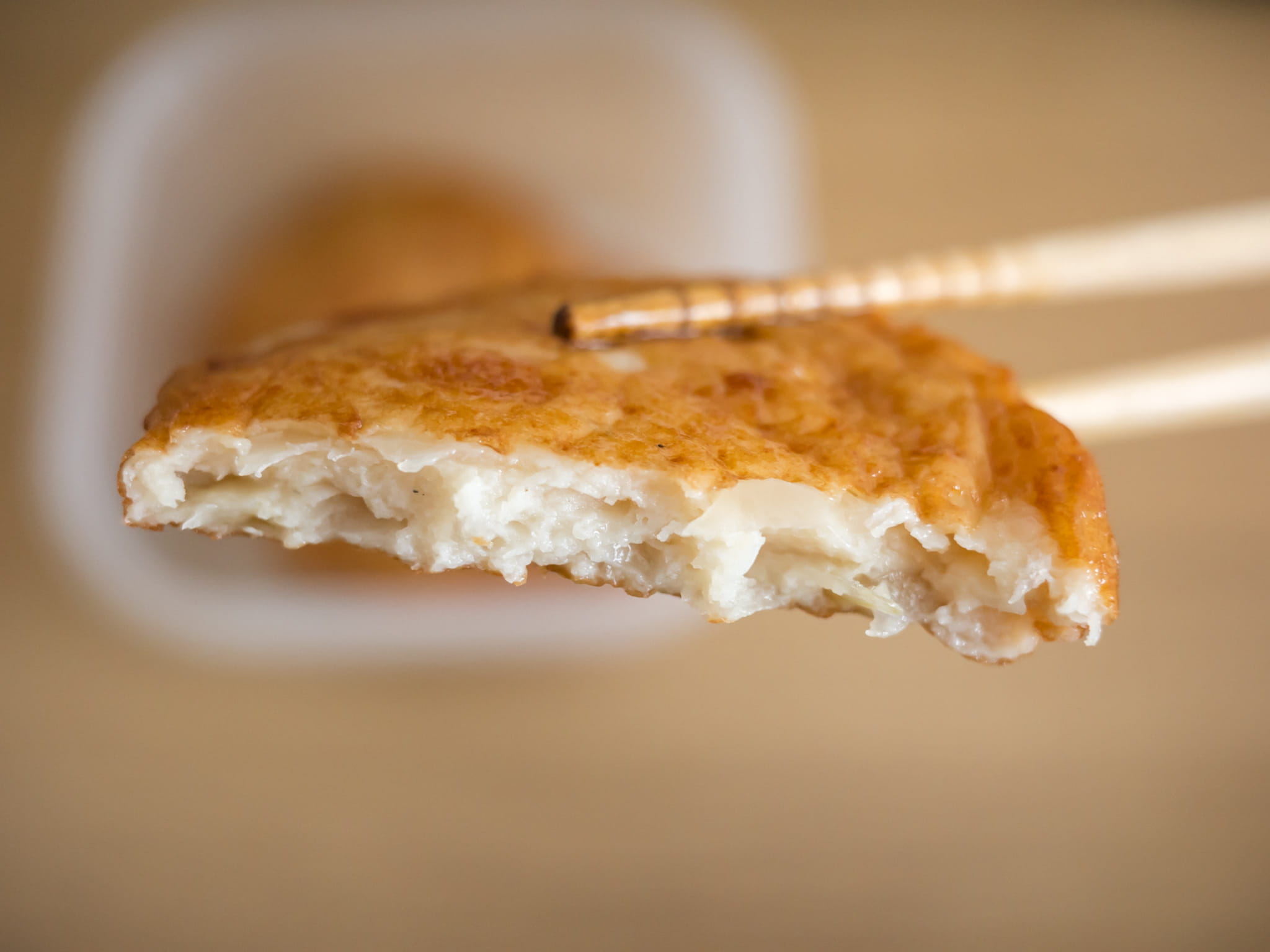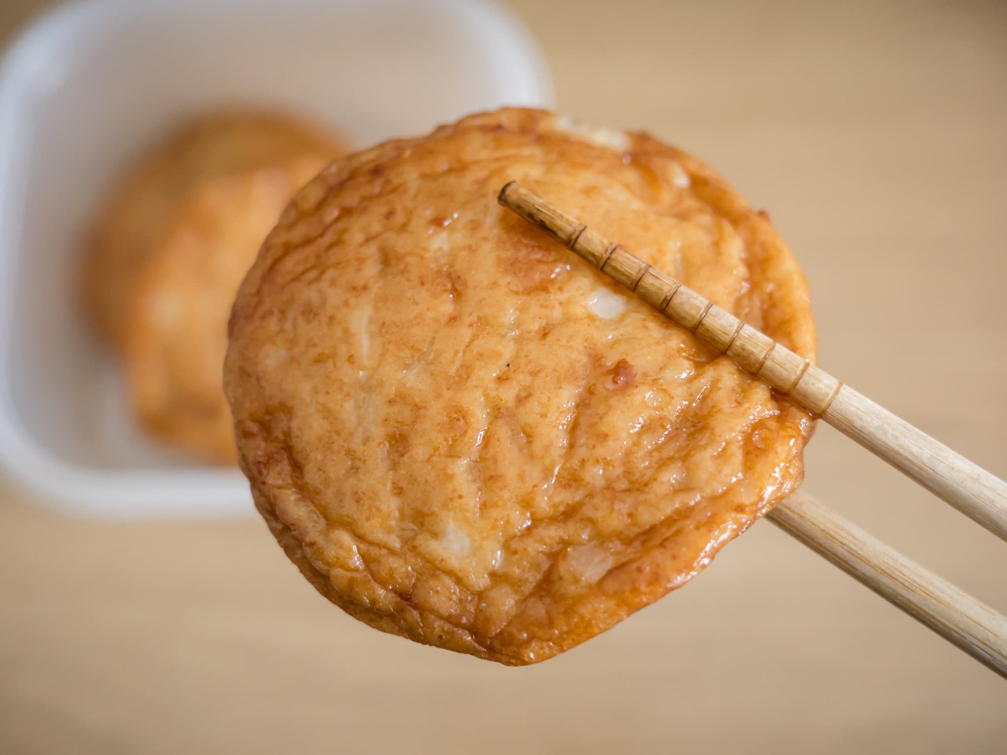 温かいほうがおいしいかな? と思ってレンジでちょっと温めてみると、玉ねぎの食感とトレードで魚のすり身の味のほうが主張してくる感じになった。