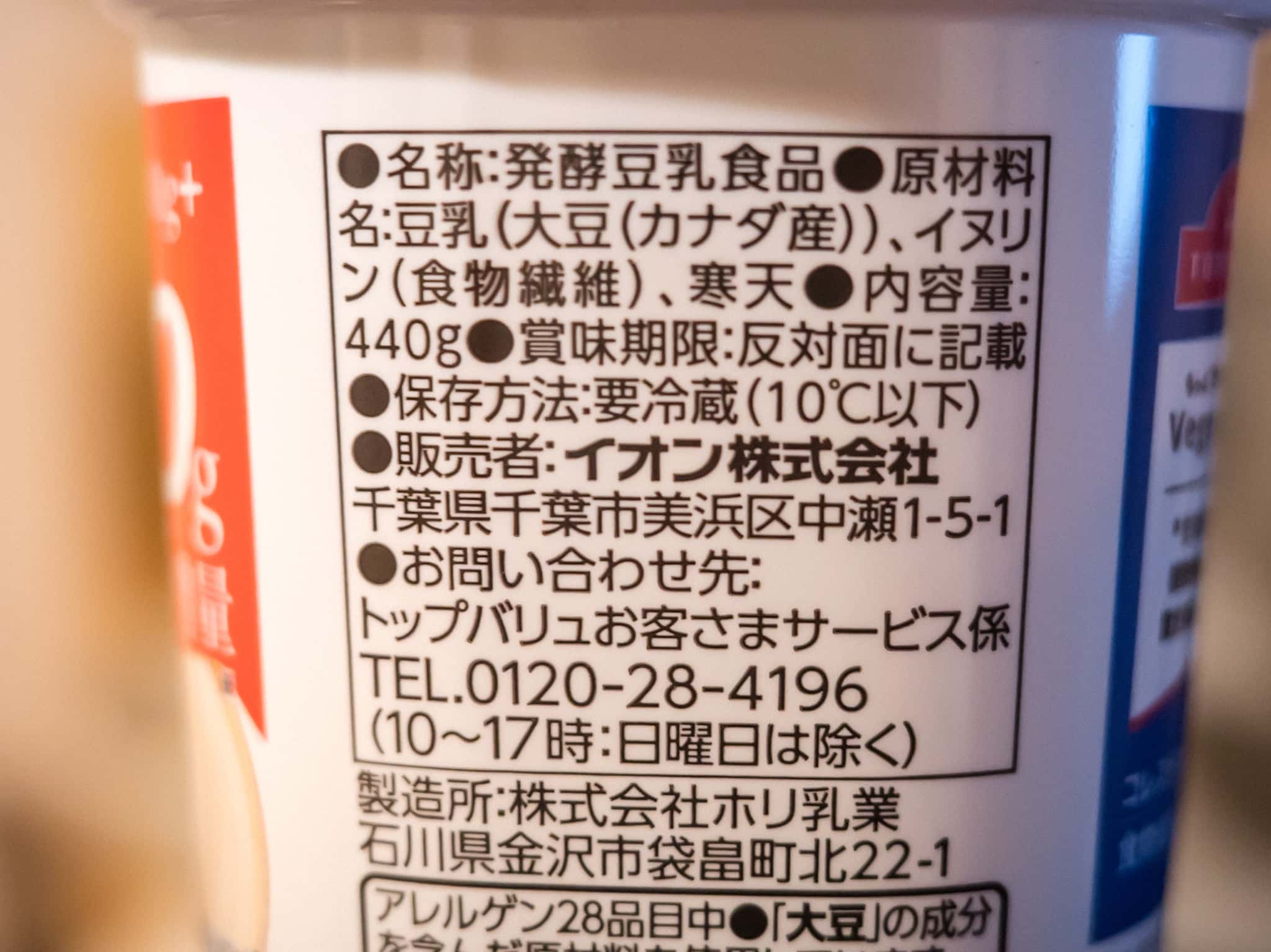 トップバリュ「豆乳ヨーグルト」原材料名やカロリー